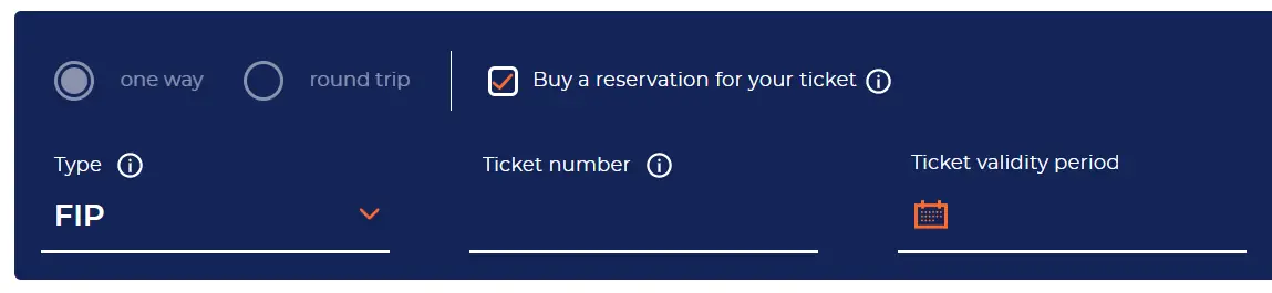 For national and cross-border connections. Cross-border FIP 50 Tickets for the entire route (not valid in your own country)
